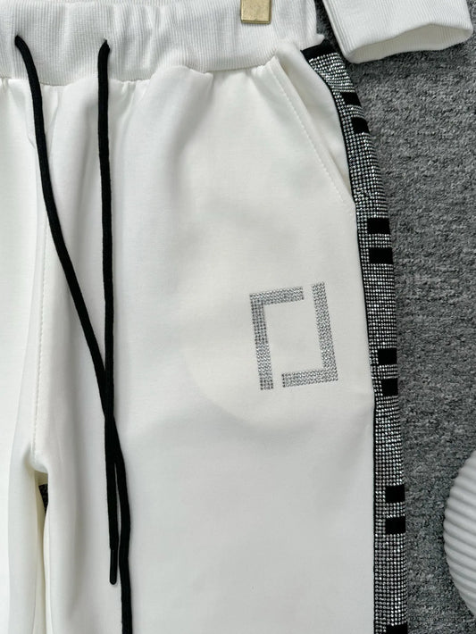 Designer Fashionable Colorful Crystal Diamond Letter Sweatshirt and Trousers Two-Piece Set for Women Autumn and Winter Suit for Men and Women M-2XL